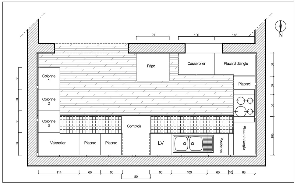 Le projet consistait à repenser entièrement la cuisine, avec pour objectifs d’améliorer l’isolation, d’optimiser les rangements et d’augmenter le plan de travail, tout en apportant un éclairage plus adapté en soirée.