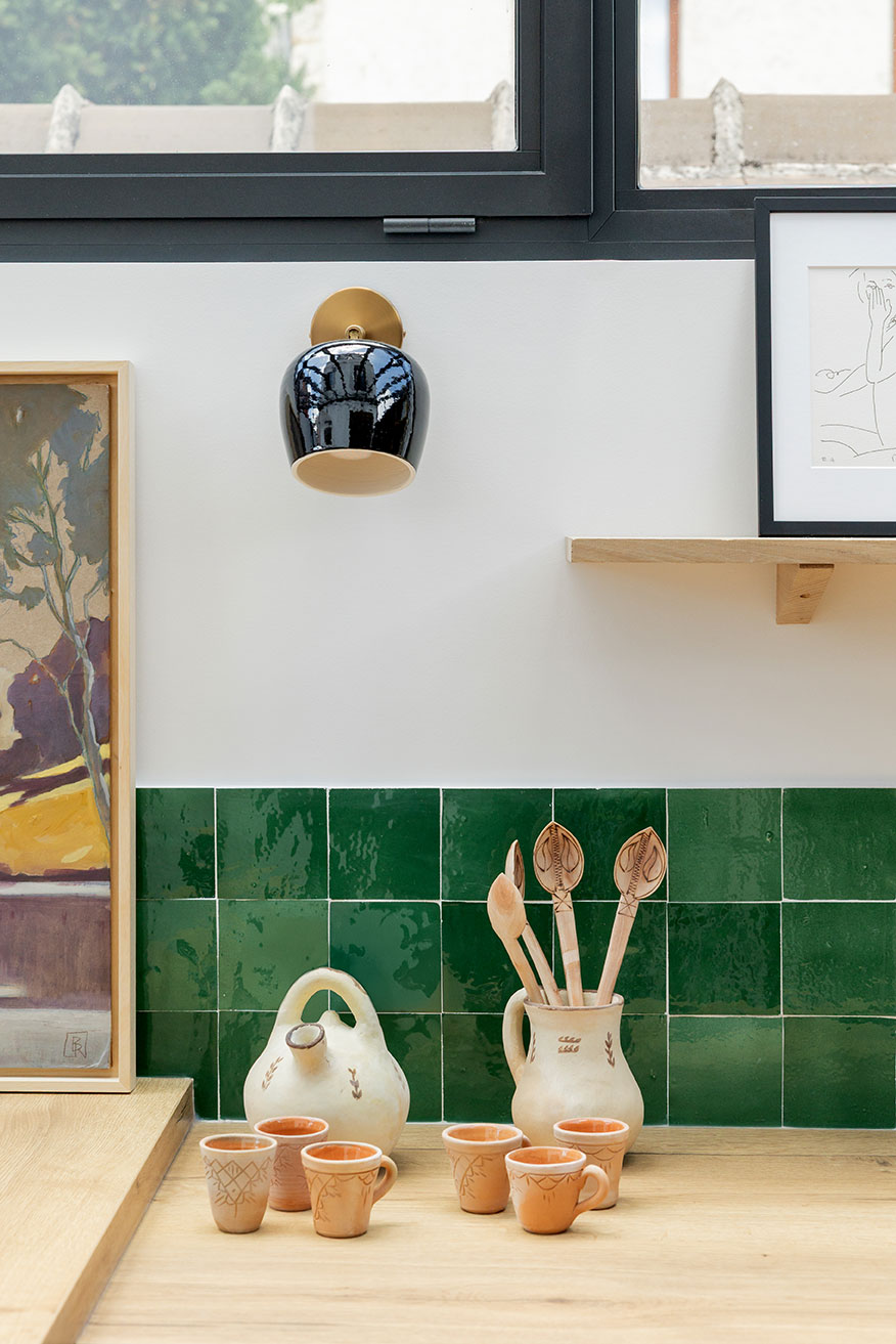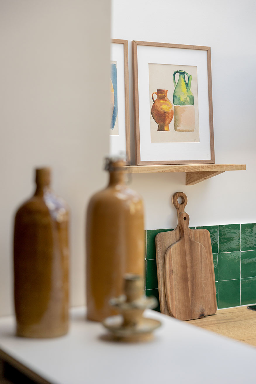 Dans la continuité de l’approche du Studio Sélène, des œuvres et objets artisanaux ont été intégrés dès la conception afin d’apporter relief et personnalité à l’ensemble.
